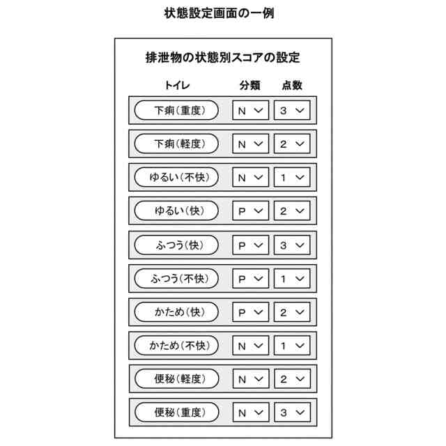 上記状態別スコアは、上記排泄物の状態に応じて設定されたスコアである
