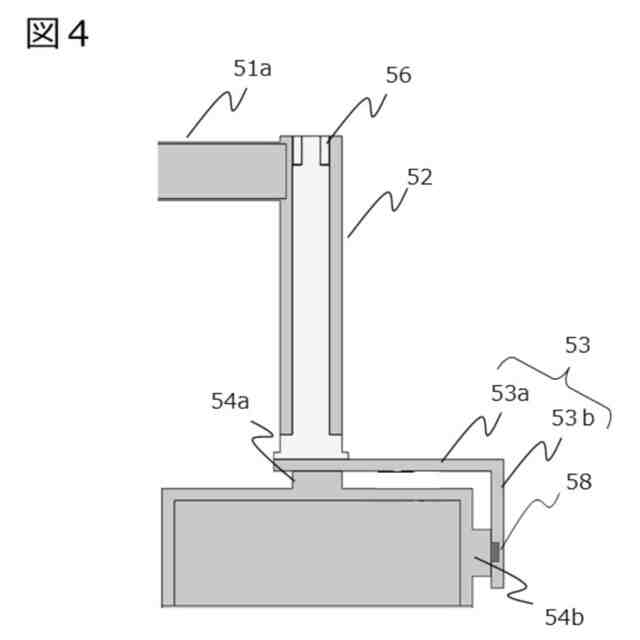 実施形態1のX線透視撮影装置のアーム支柱部52とアームベース部53の断面図。