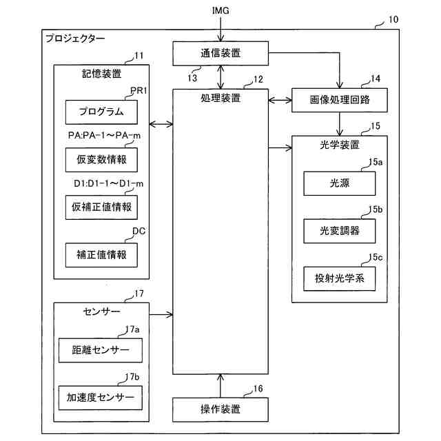 図1は、第1実施形態に係る補正方法に用いるシステム100の概略を示す図である。図1に示すように、システム100は、プロジェクター10を備える。