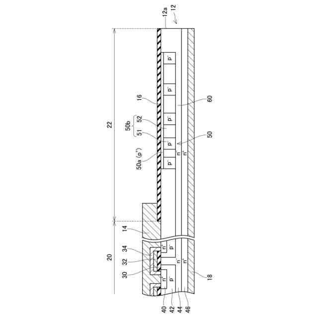 前記絶縁層に接する上部p型耐圧層(50a)と、