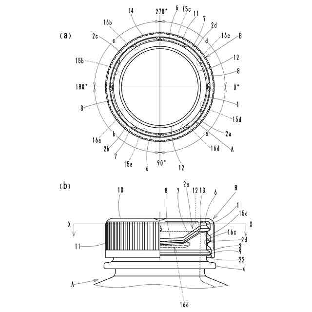 下部ねじ突部は、上部に上面部と、下部に閉蓋時に回転する方向に向けて所定の角度で傾斜する下傾斜面部とを備え、