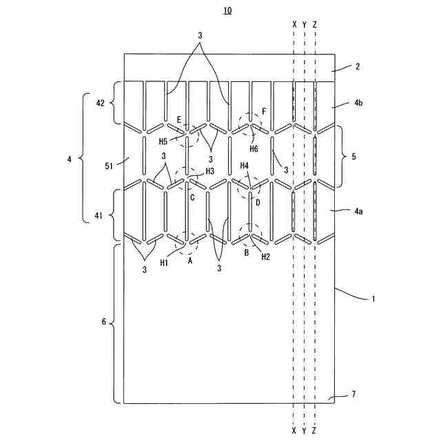 【解決手段】隣接する2つの第1の小分割電極4aを頂点において共有するヒューズ部H1,H2により互いに電気的に接続するとともに、当該ヒューズ部H1,H2を大電極部である非分割電極部6と電気的に接続する。さらに、隣接する2つの第1の小分割電極4aを頂点において共有するヒューズ部H3,H4およびヒューズ部H5,H6により互いに電気的に接続するとともに、当該ヒューズ部H3,H4およびヒューズ部H5,H6を大電極部である大分割電極部5の大分割電極51と電気的に接続する。