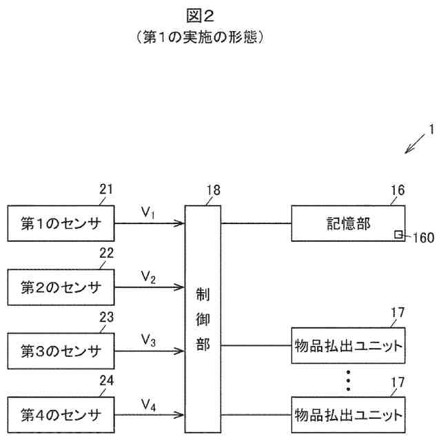 図2は、第1の実施の形態に係る自動販売機のブロック図の一例である。