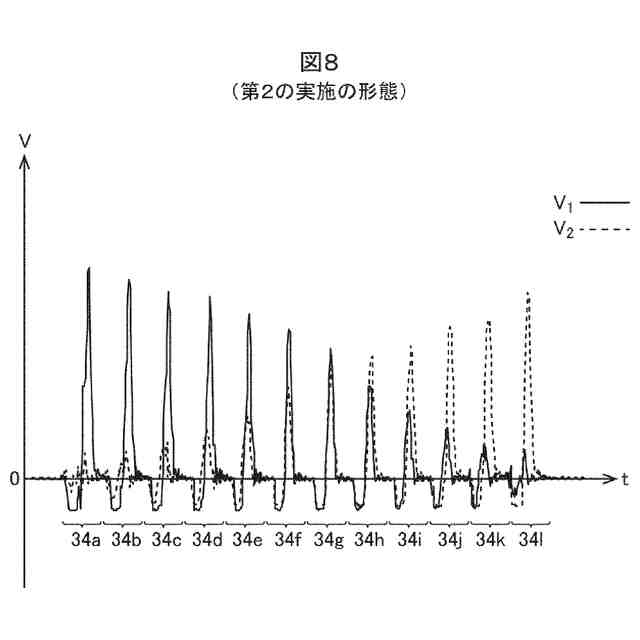 図8は、第2の実施の形態に係る自動販売機の第1のセンサ及び第2のセンサが検出する出力値の一例を示すグラフである。