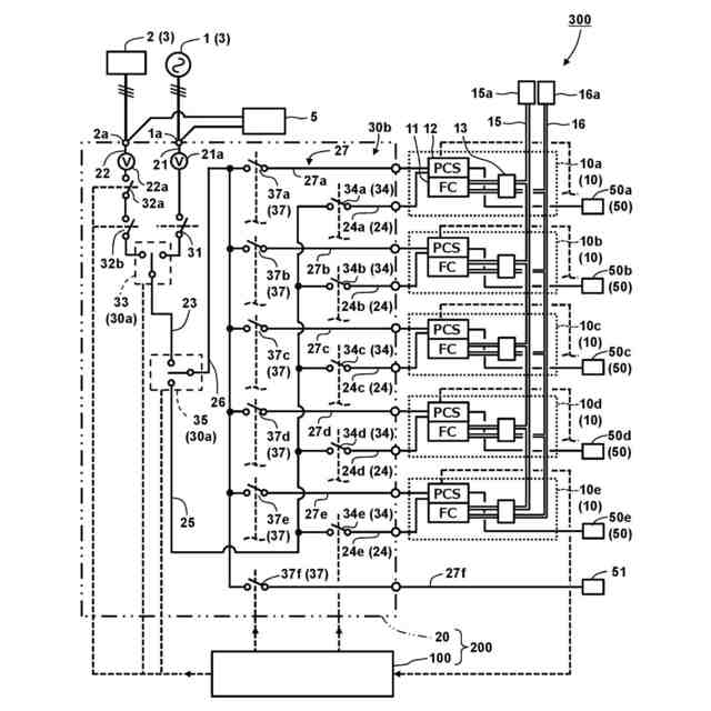上述の目的を達成するため、本実施形態に係る燃料電池用電力供給システムは、複数の燃料電池装置のそれぞれの補機への交流電力を、外部電源から受電して供給する外部電力供給モード、前記外部電源に代替するバックアップ電源から受電して供給するバックアップ電力供給モード、および複数の前記燃料電池装置の少なくとも一つからの自立電力により供給する自立運転モードのいずれによっても供給可能に構成された電力切替え装置と、電源制御装置と、を具備する燃料電池用電力供給システムであって、前記電力切替え装置は、前記外部電力供給モードと前記バックアップ電力供給モードとの切替えのための外部電源切替えスイッチと、前記外部電力供給モードまたは前記バックアップ電力供給モードと前記自立運転モードとの切替えのための自立電源切替えスイッチと、複数の開閉スイッチと、を有し、前記電源制御装置は、前記外部電源の停電の際に、前記電力切替え装置の複数の前記開閉スイッチおよび複数の前記燃料電池装置を制御する、ことを特徴とする。