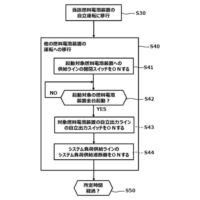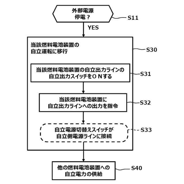 この燃料電池装置の補機用の電力には、通常、運転コスト上の理由から、商用電力などの外部電源が用いられるが、外部電源が停電した場合においての起動手段の確保、起動方法の確立が必要である。