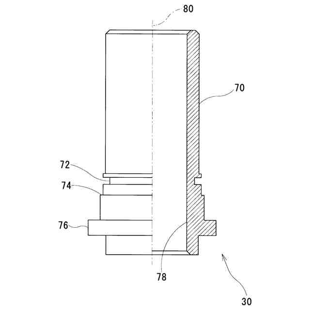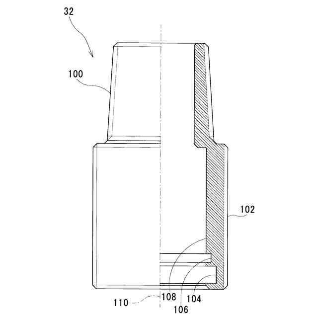 また、上述された変化部34が、胴部材50と、連結体52とを有していることが望ましい。胴部材50には、他方筒体32のうち一方筒体30の一端が進入する方の端が進入可能である。連結体52は、一方筒体30のうち他方筒体32内に進入する一端とは異なる箇所と胴部材50とを連結する。胴部材50の一端の内周に雌ねじが形成されている。他方筒体32のうち一方筒体30の一端が進入する方の端の外周に雄ねじが形成されている。その雄ねじは、胴部材50の一端の内周に形成されている雌ねじにかみ合い得るものである。