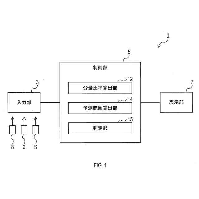 評価システム1の構成を、図1に基づき説明する。評価システム1は、入力部3と、制御部5と、表示部7と、を備える。入力部3は、データを入力可能な部材である。入力部3は、例えば、キーボード、マウス、タッチパネル、音声入力装置、スイッチ、ボタン等を備える。