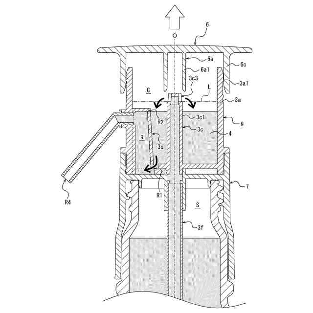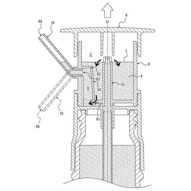 【解決手段】計量注出容器1は、口部2a、胴部及び底部をこの順に連ねて有する容器本体2と、口部2aに装着される計量注出器3とを有し、計量注出器3は、周壁部3a、底壁部3b及び計量筒3cによって形成される計量室Cと、注出流路Rとを有し、計量室Cは、容器本体2のスクイズ操作に応じて容器本体2内の内容液4を計量筒3cを通して所定の液面レベルLまで導入して貯留し、液面レベルLを超えて導入される内容液4を計量筒3cを通して容器本体2内に戻し、注出流路Rは、液面レベルLまで貯留される内容液4を導入口R1から導入して、液面レベルLよりも低い注出流路Rの最上部R2を通して、計量室Cの底部よりも下方に位置する注出口R4から注出する。