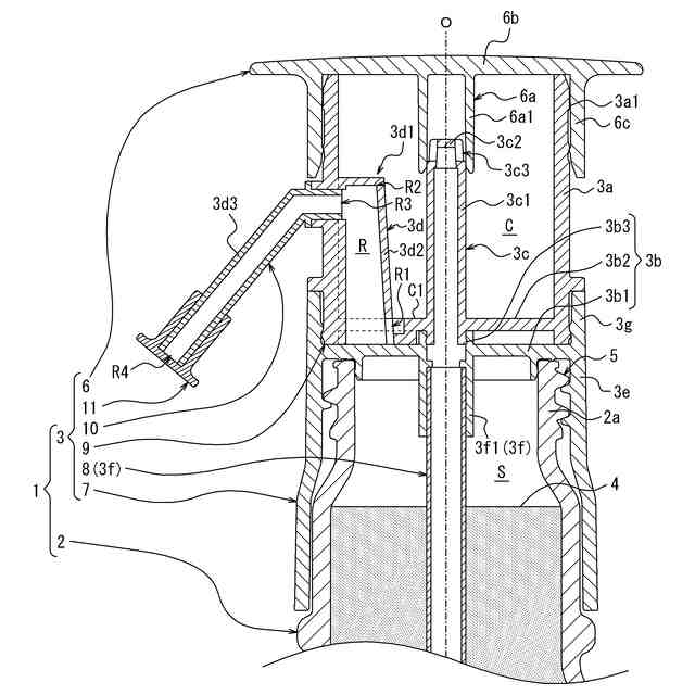 シール位置と非シール位置との間で移動可能に前記周壁部に装着される開閉キャップと、前記周壁部と前記開閉キャップとの間に形成される外気導入路とを有し、