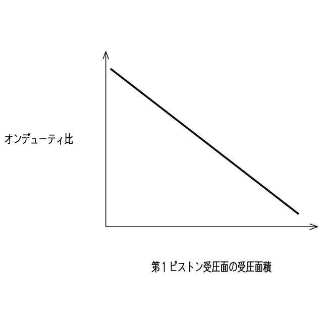 図9は、オンデューティ比と第1ピストン受圧面の受圧面積との関係を示すグラフである。
