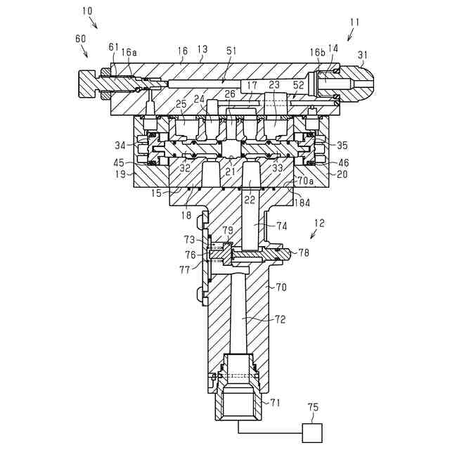 前記調整弁は、前記第1連通流路又は前記第2連通流路の一部を形成する調整弁孔の開度を調整する柱状の調整弁体を有し、