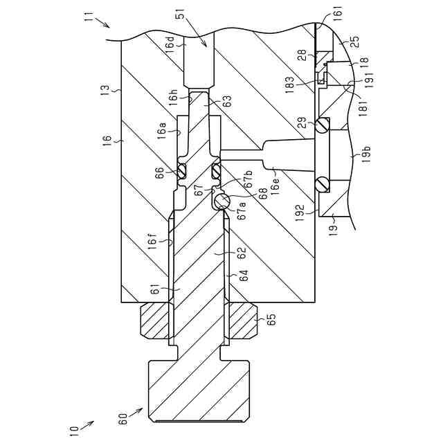 前記ボディには、前記ボディの外面に第1端が開口し、且つ、前記調整弁孔に第2端が連通する挿通孔が形成され、
