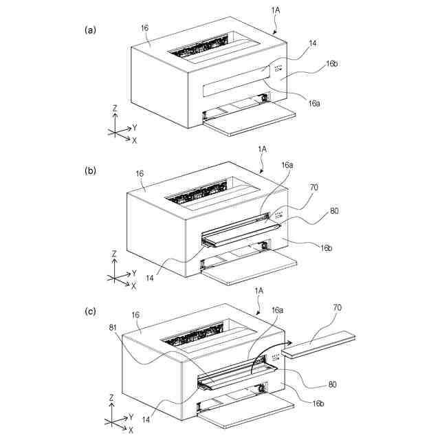 実施例1に係る画像形成装置の斜視図(a~c)。