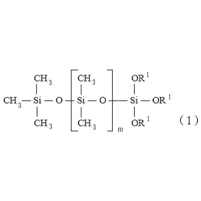 (D)下記式(1)で表される分子鎖片末端がトリアルコキシ基で封鎖されたジメチルポリシロキサン