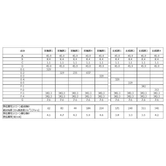 一般的に、熱伝導製シリコーン組成物の熱伝導性を向上させるためには、より熱伝導率の高い熱伝導性充填材をシリコーン樹脂ポリマー中に高充填する方法が知られている。特許文献3では、高い熱伝導率を持つ窒化アルミニウムと、アルミナを高充填することで8.5W/m・Kを超える熱伝導性シリコーン組成物が考案されている。また特許文献4ではアルミナのみを高充填することで6.5W/m・Kを超えるコストに優れた熱伝導性シリコーン組成物が開示されている。一方で、熱伝導性充填材を高充填すると、組成物の絶対粘度が著しく増加することが課題となっている。組成物の絶対粘度増加は、組成物の吐出不良やコーティング不良、押出不良といった成型性を悪化させる一因となるだけでなく、ポンプや配管などの製造設備自体の摩耗を早めてしまう問題がある。