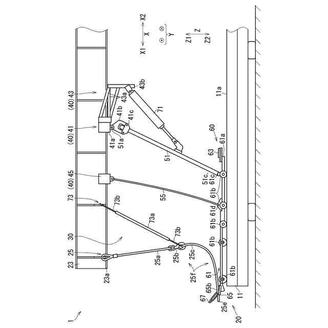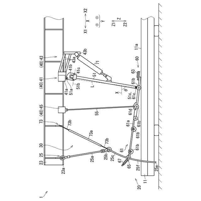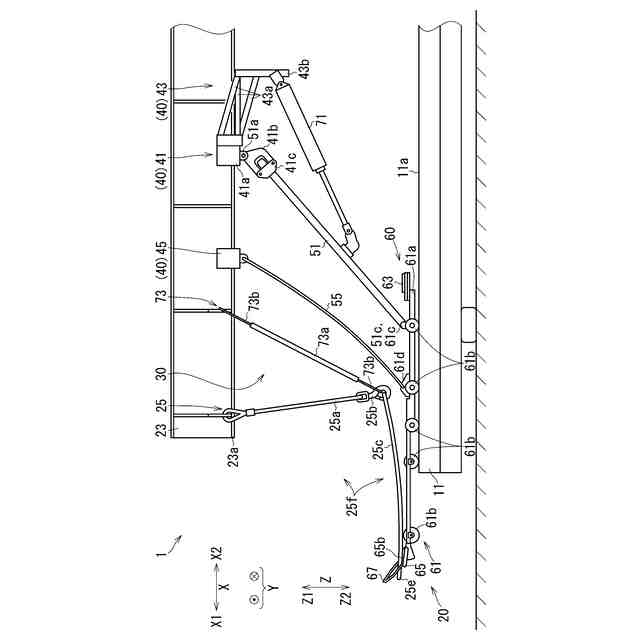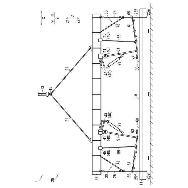 吊具20を含む吊装置1を横方向Yから見た図である。