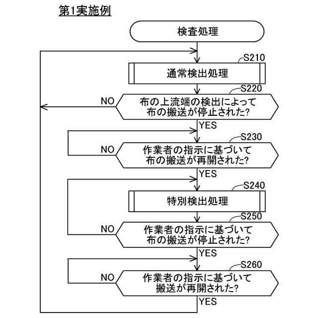 [適用例2]シート状の物体の製造方法であって、前記シート状の物体を作成する作成工程と、前記シート状の物体を示す対象画像であってイメージセンサを用いて生成される前記対象画像を取得する取得工程と、前記対象画像に示される前記シート状の物体に、検出すべき欠陥とは異なる疑似的な欠陥が含まれ得ることを示す特定条件が満たされるか否かを判断する判断工程と、前記対象画像に対して機械学習モデルを用いて実行される処理を含む検出処理を実行して、前記対象画像に示される前記シート状の物体の欠陥を検出する検出工程であって、前記検出処理は、第1検出処理と、前記第1検出処理とは異なる第2検出処理と、を含み、前記特定条件が満たされると判断される場合に前記第1検出処理を実行し、前記特定条件が満たされないと判断される場合に前記第2検出処理を実行する、前記検出工程と、前記検出工程にて前記欠陥が検出される場合に、前記シート状の物体に対して、検出済みの前記欠陥を特定するための目印を付加する付加工程と、を含む、製造方法。