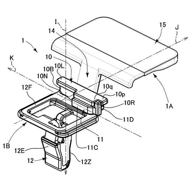 【解決手段】 取付部材1は、固定部12によって車両のベース部材2と機能部材3に対し係合組付けすることによりベース部材2に機能部材3を取り付け、その取付状態において、固定部12から取付方向Iとは逆側に延び出す撓み延出部14の先端の操作部15を、該撓み延出部14の延出方向Lに引き出す取り外し操作をすることにより、機能部材3が持ち上がって着脱固定部21から取り外すことが可能である。取付部材1は、操作部15と撓み延出部14とを一体に有した操作部材1Aと、固定部12を有した固定部材1Bとの2部材を組付けて構成される。