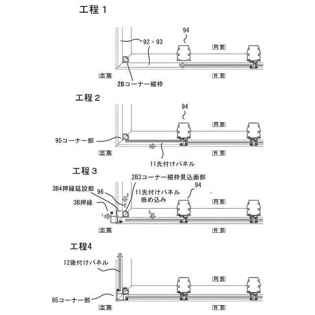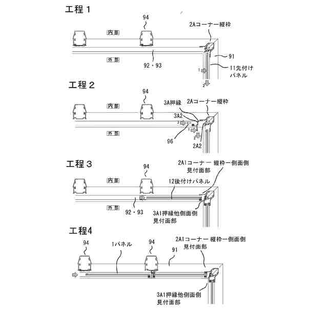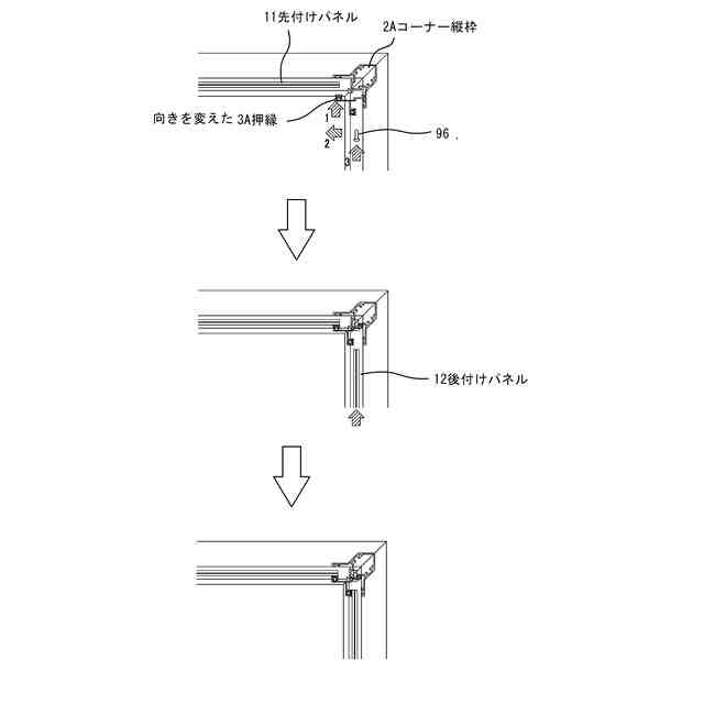 パネル1は、取り付ける順により先付けパネル11と後付けパネル12があり、