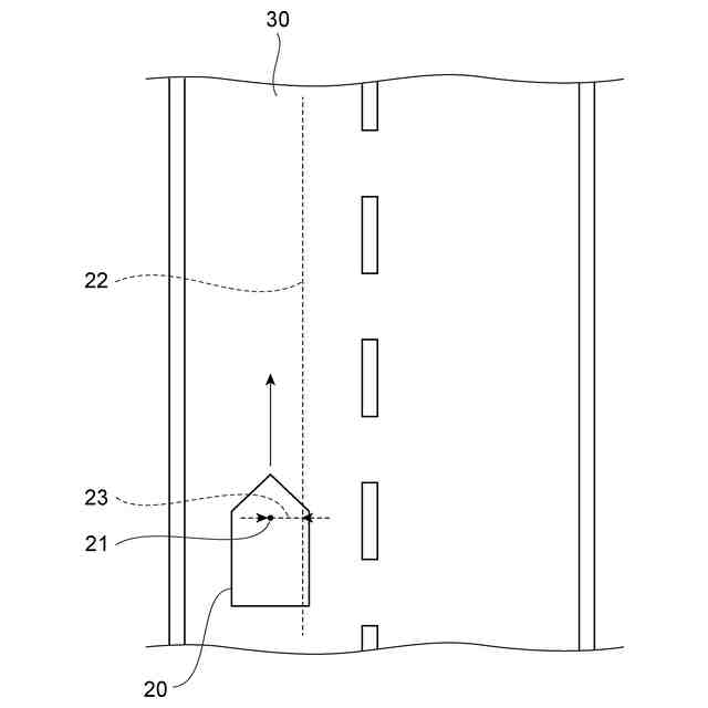 目標横位置からのズレ量に基づく目標横位置を補正する学習値の算出を説明するための平面図である。
