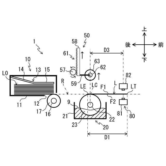 本発明において、前記規制部における前記第一幅方向の端は、前記媒体における前記第一幅方向の端よりも、前記第一幅方向側に位置してもよい。これによれば、規制部における第一幅方向の端が、媒体における第一幅方向の端よりも第一幅方向側に配置されるので、媒体において浮き上がりやすい第一幅方向の端は規制部により浮き上がることを抑制される。これにより、水塗布装置は媒体の浮き上がりにより第二面に対して水が十分塗布されなくなることを更に抑制できる。