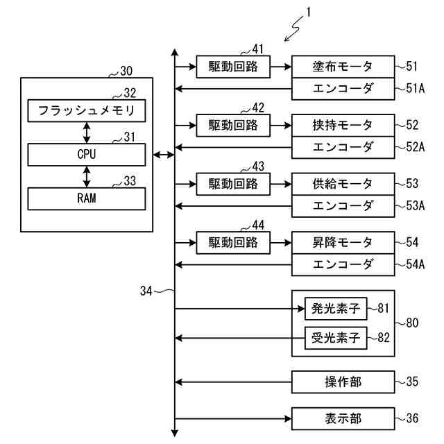 前記駆動部を制御して、前記塗布部材と前記挟持部材とが前記媒体を挟持していないときに前記挟持部材を前記退避位置に配置させる制御部と、を備えること
