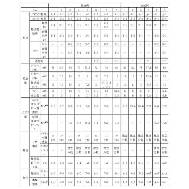 熱可塑性樹脂にエラストマーや難燃剤を添加することで、力学特性や難燃性をコントロールできる。特許文献1乃至3には、エラストマーと難燃剤を含有する樹脂組成物が開示されている。