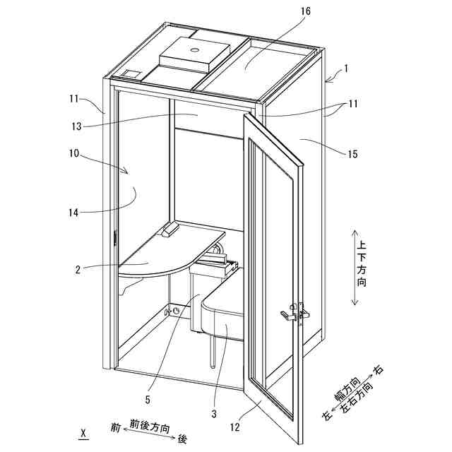 本発明の実施形態に係るブースであって扉が開状態の斜視図である。
