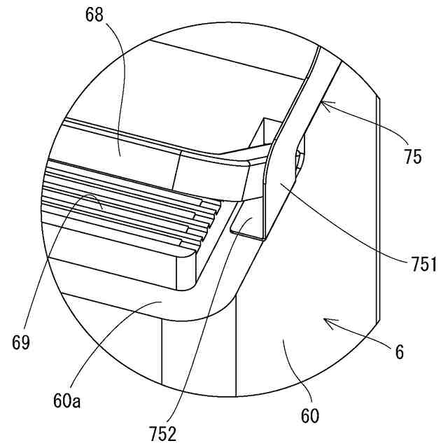 ここでいう、「上下方向と交差する回転軸」には、上下方向と直交する仮想面内の方向、幅方向、前後方向、これらの方向と交差する方向が含まれる。