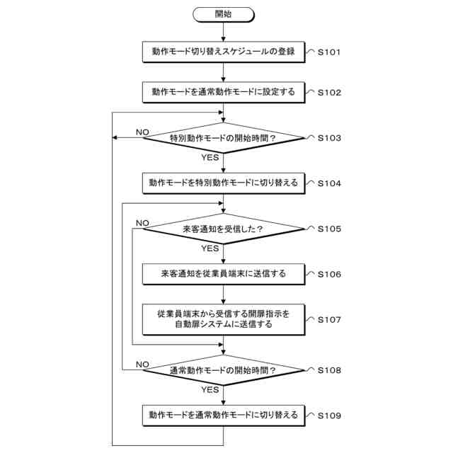 この態様によれば、店舗出入口扉の動作モードを特別動作モードにすることで、来店客は、従業員が店舗出入口扉の開扉を指示しなければ入店できないため、従業員は、自身の状況と来店客の様子とを確認し、安全が確保された状態で来店客の入店を許可することが可能となる。