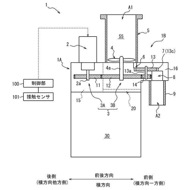 (5)上記(1)~(4)のいずれか1つの粉体定量供給装置は、前記容器ユニットを前記横方向他方側に移動させた場合、前記駆動側ギアと前記従動側ギアとが噛み合わないとき、前記駆動側ギアを1ピッチ未満だけ回転させるように、前記駆動源を動作させる制御部をさらに備える。この場合、駆動側ギア機構の駆動側ギアと従動側ギア機構の従動側ギアとの噛み合いずれがあったとしてもそれを是正することができる。