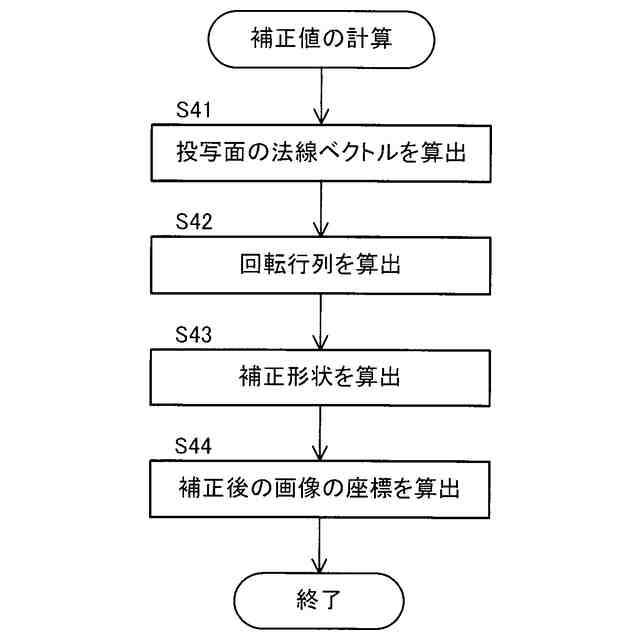 前記第2幾何補正は、前記第2投写面と前記投写方向とのなす角度を示す変数を用いる処理を含む、