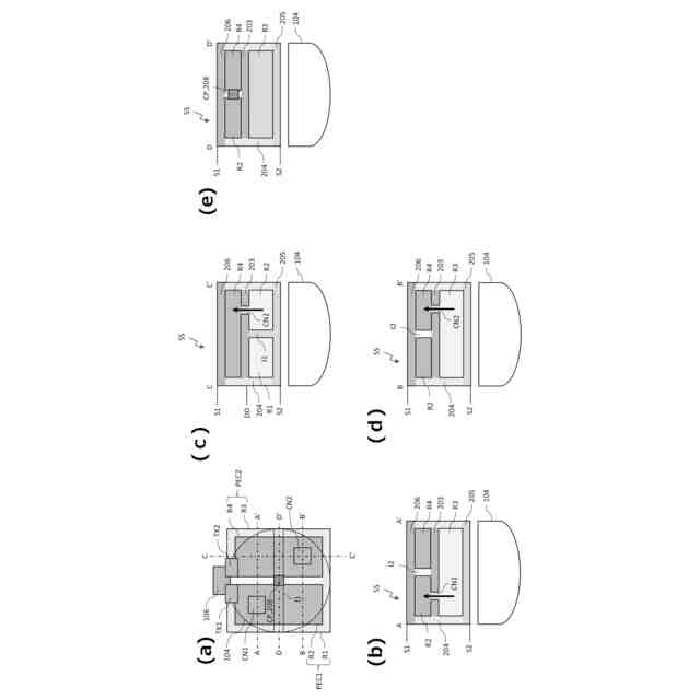 前記第1領域と前記第2領域との間、および、前記第3領域と前記第4領域との間に、第2導電型の領域が配され、