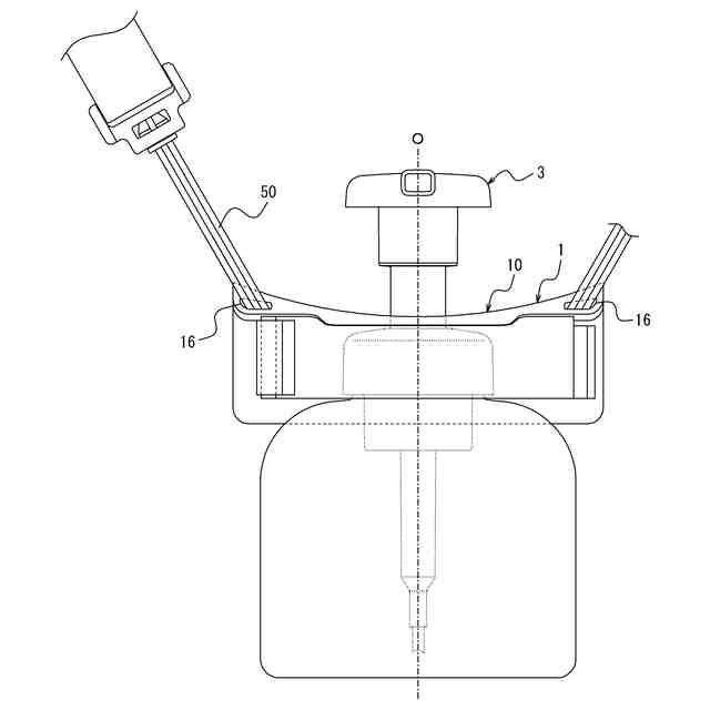 前記カバー側ポンプ嵌合部が、前記キャップの上面の半分に対応するとともに半円状の切欠きを備えた半円弧状のカバー側上嵌合壁と、前記カバー側上嵌合壁に連なるとともに前記キャップの外周面に対応した半円筒状のカバー側周壁と、前記カバー側周壁の下端に連なるとともに前記カバー側上嵌合壁に間隔を空けて対向するカバー側下嵌合壁とを備え、