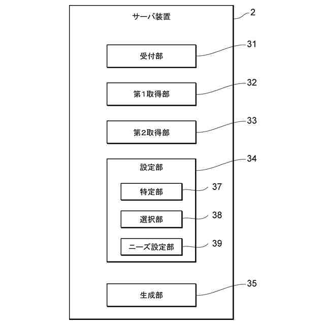 【解決手段】サーバ装置2は、商品又はサービスに関する営業情報を取得する第一取得部32と、ユーザから、商品又はサービスの営業対象の組織の指定を受け付ける受付部31と、指定された組織に関する組織情報を取得する第二取得部33と、組織情報を用いて組織に対応したニーズを設定する設定部34と、営業情報を用いて、ニーズに対応した提案を含む営業文章として営業メールを生成する生成部35と、を備える。