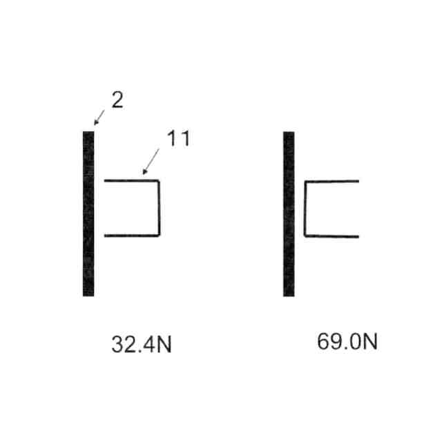 例えば、図2に示した横置き樋型の帯電体11の帯電量が1μCで、接地された導体板2との距離が1.0mmのとき、開口部を接地導体板2に向けたときは、該帯電体11に作用する鏡像力は32.4Nで、逆に底面を接地導体板2に向けたときは69.0Nになることが二次元差分法のシミュレーションで明らかになった。以下、この現象を非対称鏡像力と言う。