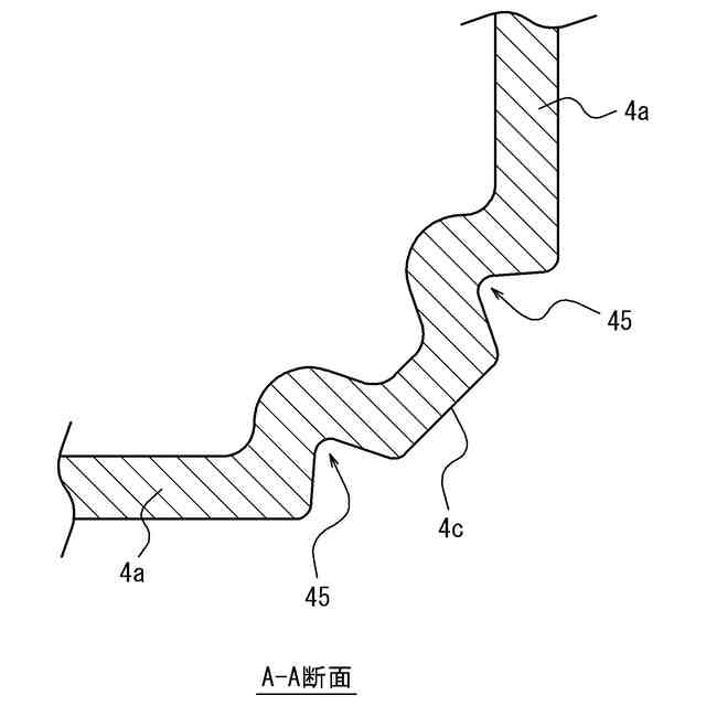 上記[3]に記載の構成において、前記縦溝の下端部には、前記主壁内で周方向に延び前記胴部の厚み方向内側に凹む横溝が連なることが好ましい。