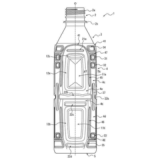 ところで、特許文献1に記載されたようなボトルについて、環境への配慮の観点から薄肉化による軽量化を行うと、輸送時の衝突や充填ラインにおけるラインプレッシャー等により、上パネル部(18)の上部角部からパネル面部(15)の上部角部に向かって折れ皺のような塑性変形が発生し易くなる場合があったため、この点において未だ改善の余地があった。