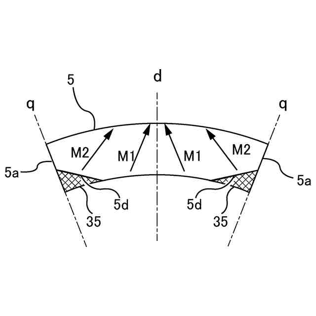 前記複数の磁化容易軸は、d軸に近い第1磁化容易軸と、q軸に近い第2磁化容易軸を含み、前記第2磁化容易軸のq軸に対する角度は、前記第1磁化容易軸のd軸に対する角度よりも大きく、
