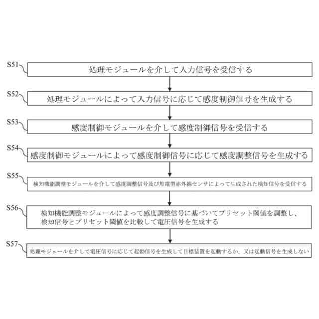 前記処理モジュール及び前記感度制御モジュールに接続され、前記感度調整信号及び焦電型赤外線センサによって生成された検知信号を受信することに使用される検知機能調整モジュールと、