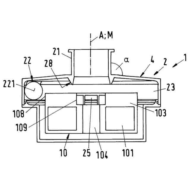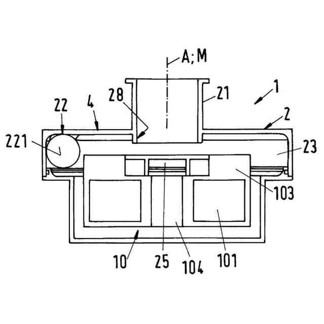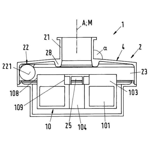 図1は、ベアリングレス・モータの原理に従って設計された現況技術から知られている遠心力ポンプの表示を示す。これは例えば、Levitronix(登録商標)BPSポンプである。より良好に理解することができるように、遠心力ポンプの内部を可視にするために図1では一部分が切り取られている。