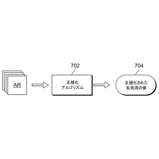 [0015] 一実施形態による、気流報告を受信し、その気流報告に基づいて正規化された乱気流の値を生成する、乱気流通知システムの正規化アルゴリズムを示す。