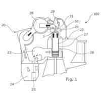 ここで図面を参照すると、いくつかの図を通して同一の符号が同一の要素を指し、図1は、本明細書で使用され得るガスタービンエンジン10の概略図を示す。ガスタービンエンジン10は、圧縮機15を含むことができる。圧縮機15は、流入する空気の流れ20を圧縮する。圧縮機15は、圧縮された空気の流れ20をいくつかの燃焼器缶25に送達する。燃焼器缶25は、圧縮された空気の流れ20を加圧された燃料の流れ30と混合し、混合物に点火して高温燃焼ガスの流れ35を生成する。単一の燃焼器缶25のみが示されているが、ガスタービンエンジン10は、円周方向アレイなどで位置決めされた任意の数の燃焼器缶25を含むことができる。あるいは、燃焼器25は、環状燃焼器であってもよい。燃焼ガス35の流れは、次いでタービン40に送達される。燃焼ガス35の流れは、タービン40を駆動して機械的仕事を発生する。タービン40で発生した機械的仕事は、ロータシャフト45を介して圧縮機15および発電機などの外部負荷50を駆動する。