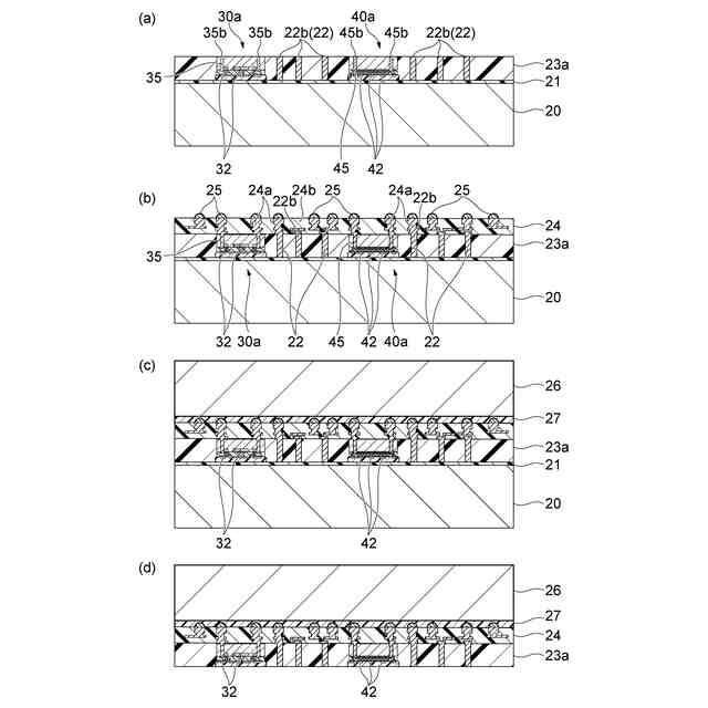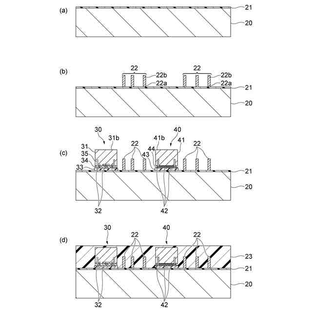[1]本開示は、一側面として、半導体装置の製造方法に関する。この半導体装置の製造方法は、第1端と逆側の第2端とを有する導電性の柱状部材を第1支持体の上に設ける工程であって、第1端が第1支持体側に位置する、工程と、第1面及び逆側の第2面を有する半導体基板と、半導体基板の第1面側に設けられた端子電極と、端子電極を覆うように第1面側に設けられた樹脂層とを含む半導体部材を、第1面が第1支持体に向くように、第1支持体に取り付ける工程と、柱状部材及び半導体部材を封止する第1封止材層を第1支持体の上に形成する工程と、少なくとも柱状部材に電気的に接続される第1配線層を第1封止材層の上に形成する工程と、第1封止材層から第1支持体を分離する工程と、端子電極の先端が露出するように少なくとも樹脂層を研削する工程と、端子電極及び柱状部材の少なくとも一方に電気的に接続される第2配線層を端子電極が露出している第1封止材層の上に形成する工程と、を備えている。