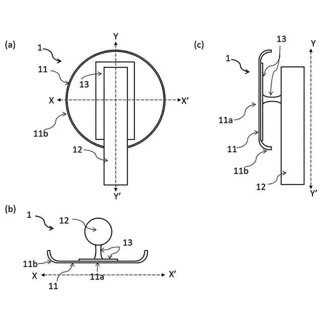 図1は、本発明で使用する鏝の一例である。(a)は、正面図、(b)は(a)のX-X’断面図、(c)は、(a)のY-Y’断面図である。