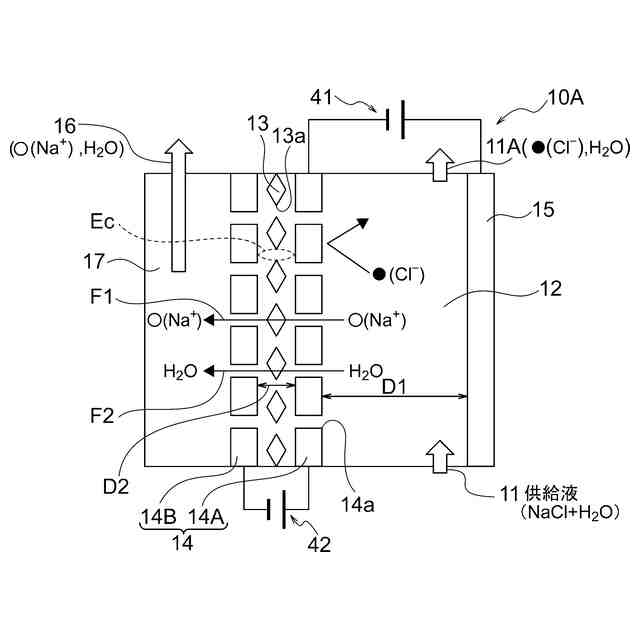 分離したマイナス帯電成分が水と共に陰イオン液として流入する陰イオン室と、を備えたなり、