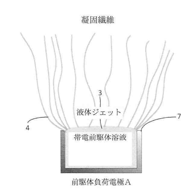 非キャピラリー(ニードルなし、自由表面、スリット、ワイヤ、シリンダ)繊維生成電極の利用は、複数のジェットの同時生成によってプロセス生産性を向上させるが、プロセスに必要とされるより高い電圧を犠牲にする。一般的な静電界(DC電界紡糸)の代わりに、周期的な交流電界(AC電界紡糸)を印加することにより、生成された繊維を効率的に運び去る「コロナ」または「イオン」風現象の効果が増加するため、繊維生成の条件が改善される。AC電界紡糸は、DC電界紡糸と比較して、電極面積当たりの繊維生成速度が高く、プロセス生産性が高く、繊維の取り扱いが容易である。しかしながら、AC電界紡糸の周期的性質は、より強い磁場が繊維生成電極に限定され、前駆体の特性が変化することに起因して、多くの前駆体溶液の紡糸特性を強く制限することがある。