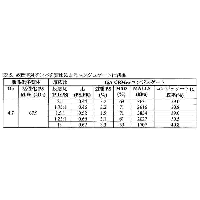 第2の肺炎球菌コンジュゲートワクチン手法は、混成担体手法である。混成担体手法では、単一のタンパク質担体を使用する代わりに、2種以上のタンパク質担体が使用され、特定の血清型由来の莢膜多糖体が第1のタンパク質担体にコンジュゲート化され、異なる血清型由来の莢膜多糖体が少なくとも、第2の異なるタンパク質担体にコンジュゲート化される。たとえば、GlaxoSmithKlineが、タンパク質担体として、インフルエンザ菌タンパク質D、破傷風トキソイド、およびジフテリアトキソイドを使用した10価(血清型1、4、5、6B、7F、9V、14、18C、19F、および23F)混成担体肺炎球菌コンジュゲートワクチンであるSYNFLORIXを開発している。SYNFLORIXでは、血清型1、4、5、6B、7F、9V、14、および23Fがタンパク質Dにコンジュゲート化され;血清型18Cが破傷風トキソイドにコンジュゲート化され;血清型19Fがジフテリアトキソイドにコンジュゲート化されている。非特許文献1。より最近では、Sanofi PasteurおよびSK Biosciencesが、公開国際出願である特許文献3、特許文献4、特許文献5、および特許文献6で開示されているとおりの、16価(血清型1、3、4、5、6A、6B、7F、9V、12F、14、18C、19A、19F、22F、23F、および33F)、20価(血清型1、3、4、5、6A、6B、7F、8、9V、10A、11A、12F、14、15B、18C、19A、19F、22F、23F、および33F)、および21価(1、3、4、5、6A、6B、7F、8、9N、9V、10A、11A、12F、14、15B、18C、19A、19F、22F、23F、および33F)混成担体肺炎球菌コンジュゲートワクチンを作製しており、これら文献それぞれの全体を参照によって組み入れる。こうした混成担体多価肺炎球菌コンジュゲートワクチンでは、2つの血清型(血清型1、3、および5のうちの2つ)または4つの血清型(血清型15Bおよび22Fならびに血清型1、3、および5のうちの2つ)が破傷風トキソイドにコンジュゲート化され、残りの血清型がCRM