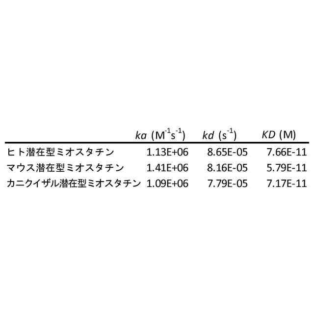 TGF-βファミリーの他のメンバー同様、ミオスタチンは、N末端プロペプチドドメインと、活性分子として考えられているC末端ドメインとを含有する大きな前駆体タンパク質として合成される(例えば非特許文献5;特許文献2を参照のこと)。ミオスタチン前駆体の2つの分子は、C末端増殖因子ドメインに存在する1つのジスルフィド結合を介して共有結合している。活性な成熟型(mature)ミオスタチン(C末端増殖因子ドメインからなるジスルフィド結合ホモダイマー)は、タンパク質分解性プロセッシングの複数の工程を通して、ミオスタチン前駆体から遊離する。ミオスタチン活性化経路の第1の工程において、N末端プロペプチドドメインとC末端増殖因子ドメインの間のペプチド結合Arg266~Asp267は、ホモダイマー前駆体の両方の鎖においてフーリン型前駆タンパク質転換酵素によって切断される。しかし、結果として得られた3つのペプチド(2つのプロペプチドおよび1つの成熟型ミオスタチン(すなわち、増殖因子ドメインからなるジスルフィド結合したホモダイマー))は会合したままであり、「潜在型(latent)ミオスタチン」と呼ばれる非共有結合性の不活性な複合体を形成している。成熟型ミオスタチンは次いで、プロペプチドの分解を介して潜在型ミオスタチンから遊離することができる。メタロプロテイナーゼの骨形成タンパク質1(BMP1)ファミリーのメンバーは、ホモダイマーである活性な成熟型ミオスタチンの遊離と同時に、プロペプチド内の1つのペプチド結合Arg98~Asp99を切断する(例えば非特許文献6を参照のこと)。さらに、潜在型ミオスタチンはまた、酸処理または熱処理のいずれかで複合体を解離させることによって、インビトロで活性化され得る(例えば非特許文献7を参照のこと)。